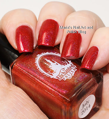 Enchanted Polish July 2014 is a red metallic subtle holo. In