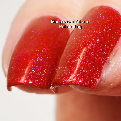 This is really a beautiful red holo, it looks so good on your nails :-)