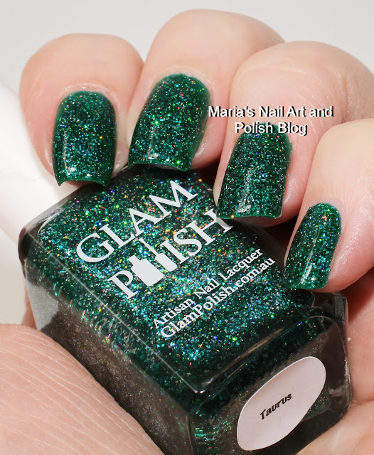 Glam Polish Taurus is the second last in the HypnoticPolish store exclusive collection called Zodiac. It is a gorgeous deep emerald green