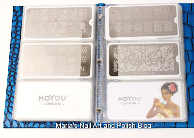 As you probably know some brands has a little bigger plastic backing on their plates, and for instance plates from Marianne Nails have both kinds, so I have one with the bigger backing in one slot of each page, and one with the smaller/normal backing on the other side of the page, this way the fit isn't too tight.