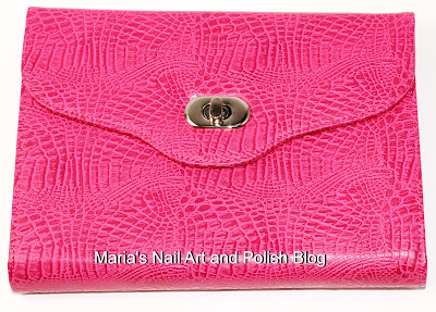 This cute little faux leather hot pink clutch has room for 16 plates in the size 6 x 12 cm with or without plastic backing.