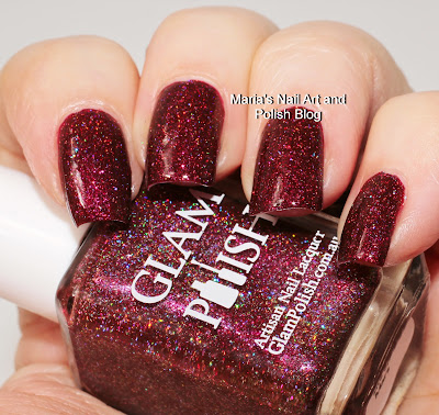 It’s a rich wine red – very vampy and rich. It contains holo flakies and dries