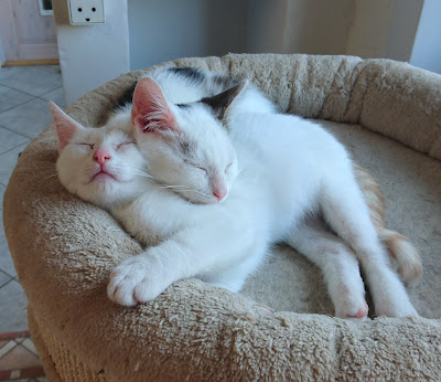 As mentioned on the blog on July 19 - I said yes to fostering two kittens (the two mostly white boys), when my vet asked, they were around 5-6 weeks...