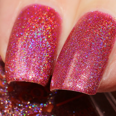 It’s a pink-purple holo with shimmer/micro flakies in violet and purple. You