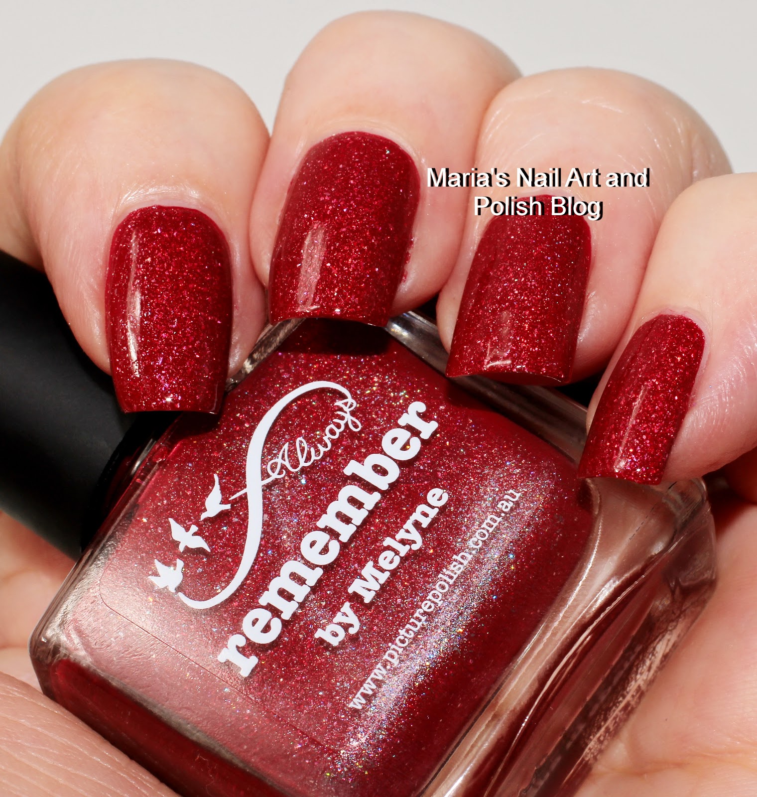 with a coat of Seche Vite.Picture Polish Remember also belongs to the 2016 Collaboration Shades. It is a gorgeous red scattered holo unlike any other reds I own. It has shades of red bricks, purple and rose – really hard to pin point! It is rather opaque in one coat, but this is two with a coat of Seche Vite.